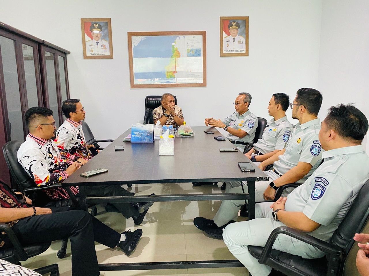 Pertemuan strategis ini disambut langsung oleh Kepala Bapenda Sulawesi Barat, Bapak Abdul Wahab Hasan. Fokus utama pembahasan mencakup empat poin krusial, yakni percepatan integrasi sistem host-to-host untuk monitoring data secara real-time, rencana pelaksanaan operasi gabungan penertiban kendaraan, serta evaluasi kelengkapan data NIK dan nomor telepon wajib pajak sebagai basis layanan pengingat jatuh tempo otomatis.